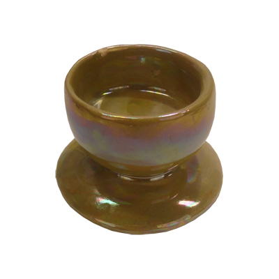 Fake candle in the shape of a ball of wool made of wax. The candle has a warm colored glow. The ..
