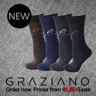 The socks produced for Graziano are made of the best raw materials, through advanced technology performance, containing rich colours with an interesting design.