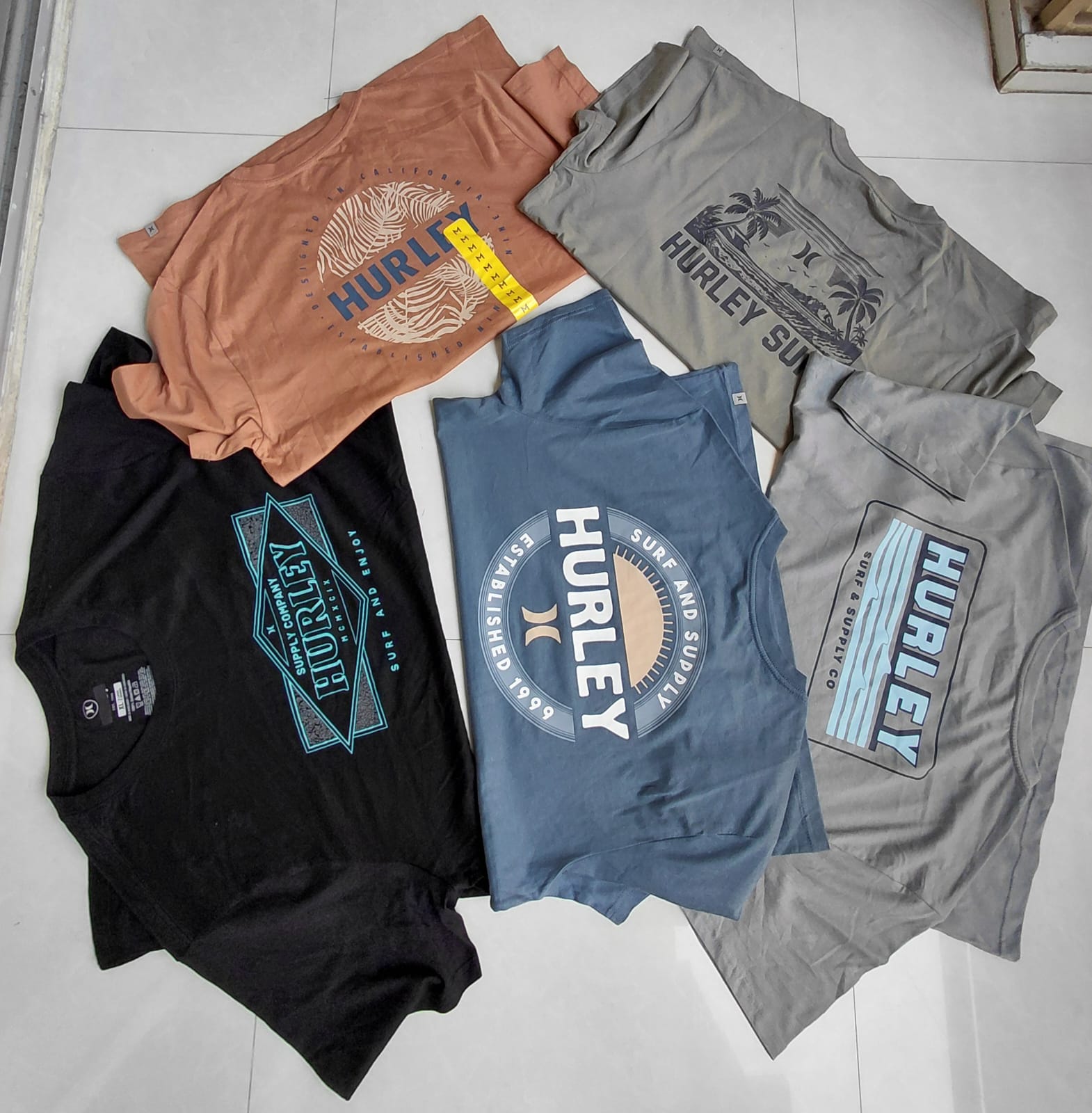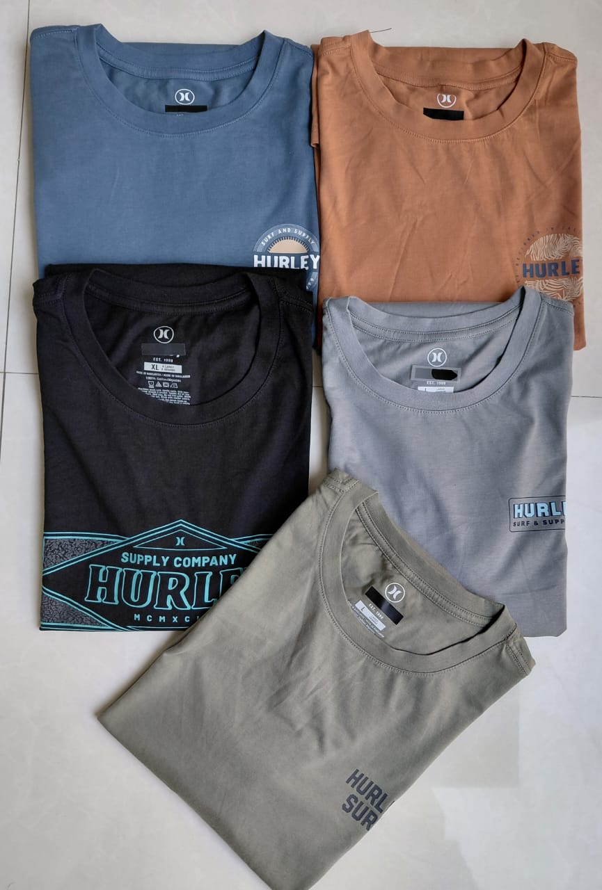 Hurley original t shirts Quantity : 8000 pcs ( partial quantity 500 pcs or 1000 pcs possible) Color &style : 7+ Size : s to 3xl