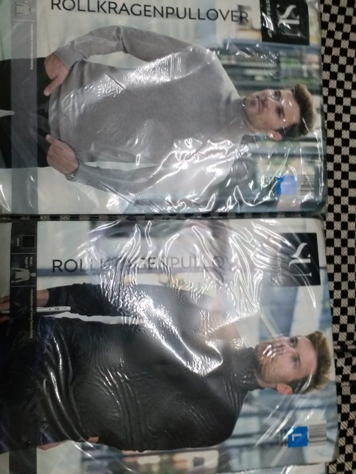 Men high neck sweater Quantity : 1400 pcs ( partial quantity 250 pcs possible) Color : 3 Size : s to.xxl Ask for details Garments door to door delivery possible within 7 to 12 days by fedex
