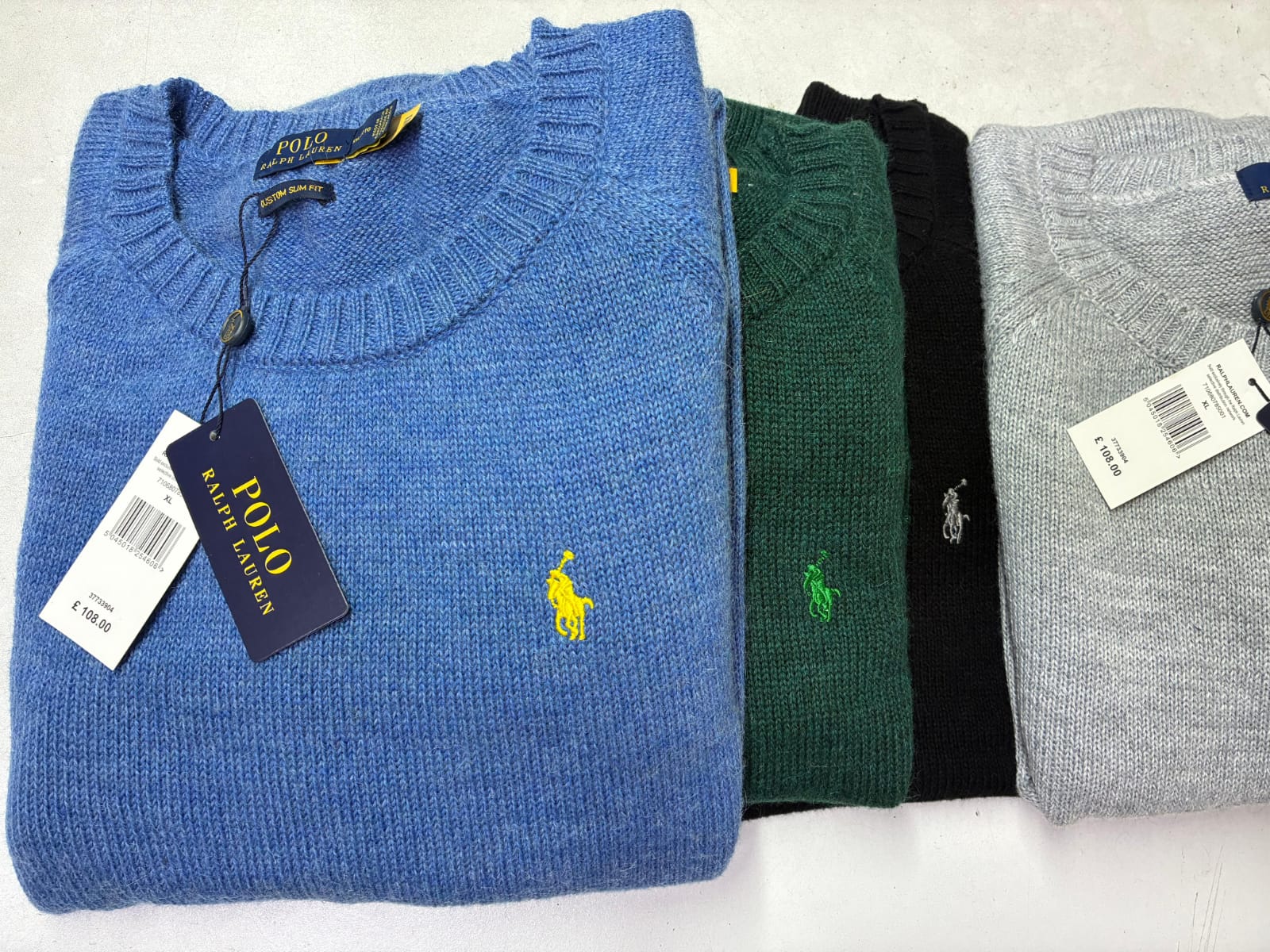 Men RL sweaters Quantity : 14000 pcs ( partial quantity 500 pcs or 1000 pcs possible) Color : 4/5 Size : s to xxl