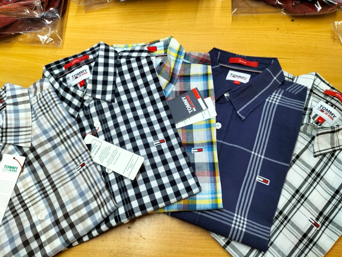 Men Tommy shirts Quantity : 3200 pcs ( partial quantity 250 pcs possible) Color : 8/9 Size : s to xxl Garments door to door delivery by fedex