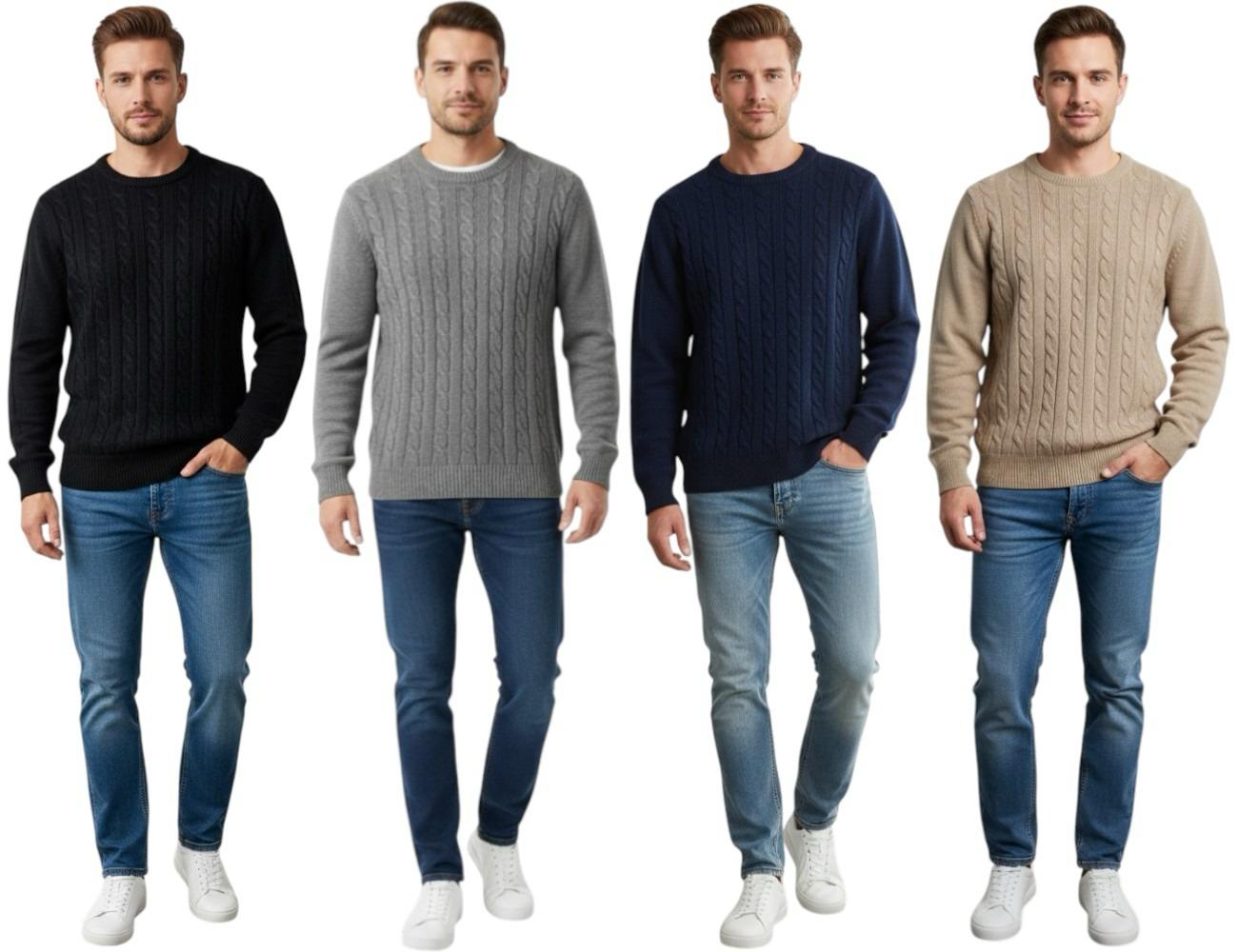 MESN R/N CABLE SWEATER