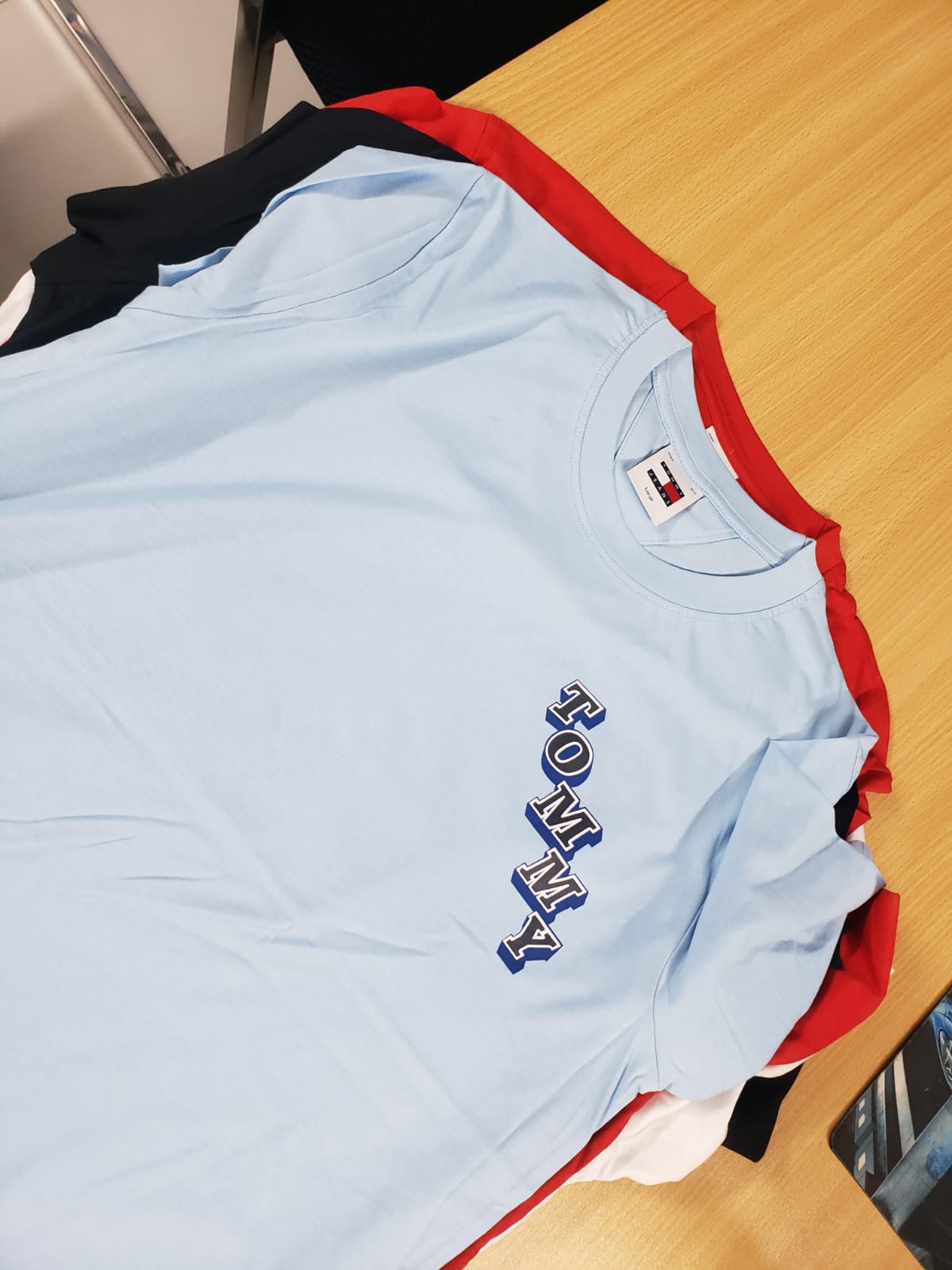 Tommy t shirts Quantity : 3800 pcs ( partial quantity 250 pcs or 500 pcs) Color &print : many Size : s to 3xl