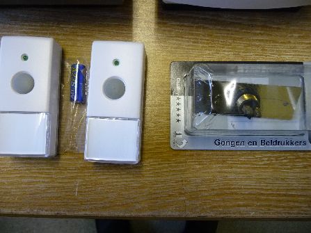 Stock no: 1022 Deurbellen en gongen en draadloze deurbeldrukkers gedeeltelijk verpakt Door Bells and gongs, wireless switch's partially packed Türklingel und Gongs, drahtlose Türklingeldrucker teilweise verpackt
