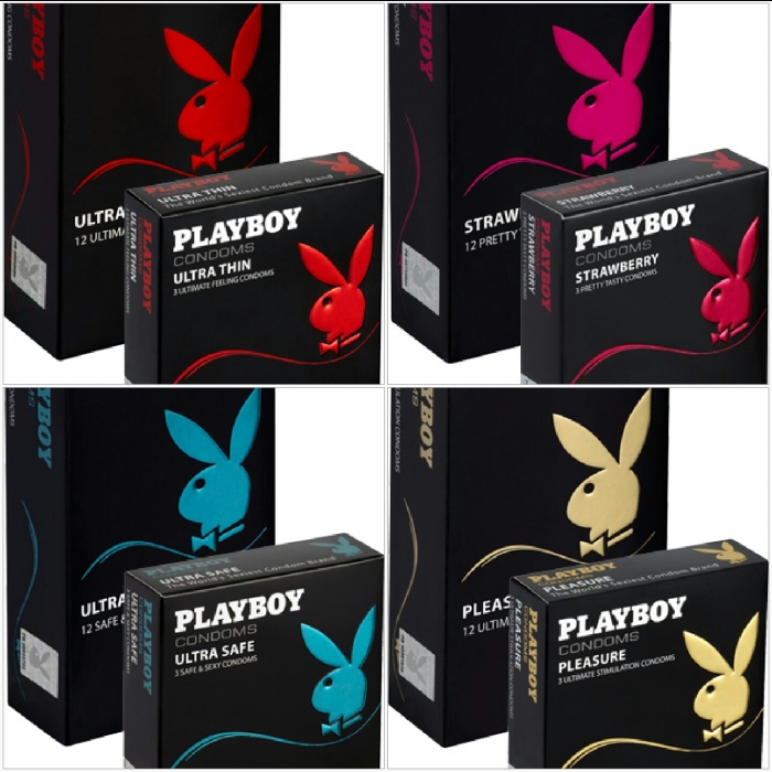 Playboy condoms 12 / box 4 types - ultra safe - ultra thin - strawberry - pleasure Large quantity Low prices By arrangement exp.date:01.2017