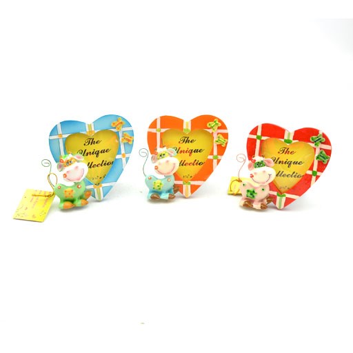 Photo frame heart with colored cow assorted 5 x 5 x 8,5 cm. Stock: 7488 pcs. Take all price: €0,45